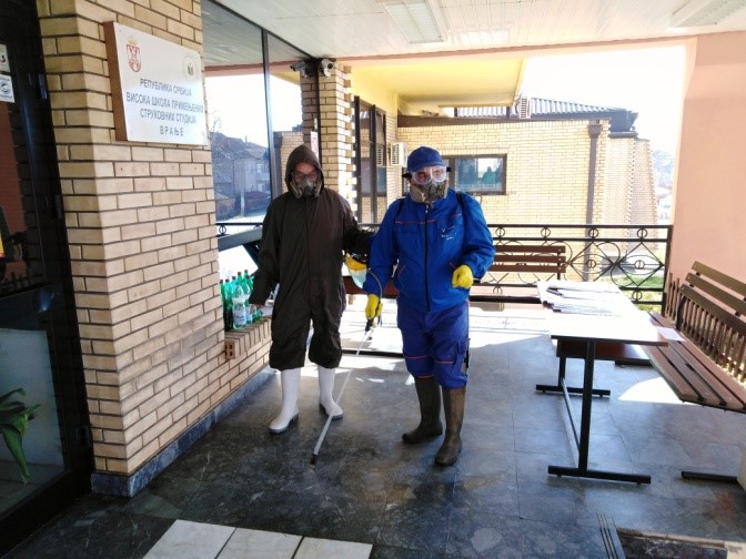 Дана 20.03.2020. године у просторијама одсека у Врању, Академије техничко-васпитачких струковних студија извршена је потпуна санитација растворним средством против корона вируса. Санитација је извршена под руководством стручног лица др Срђана Тасића користећи упуство произвођача о раствору санитарног средства. Такође, коришћена је заштитна опрема у виду заштитних одела и заштитних маски са филтером ознаке ABK 1. Кретање у одсеку је ограничено, а путање су обележене заштитним тракама. Дежурства су уведена сваког радног дана у времену 9,00 до 12,00 сати у просторијама библиотеке. Све информације могу се добити на телефом 017/421-859 или 017/421 – 889.
